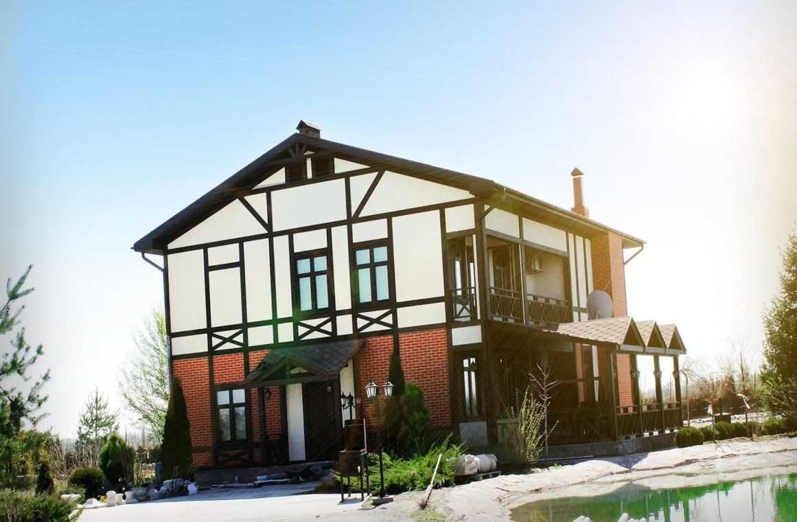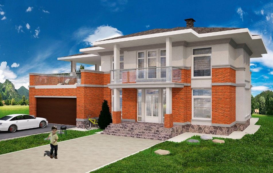 Такое сочетание материалов прекрасно удовлетворяет стилю прерий. Основанный американским архитектором Фрэнком Ллойдом Райдом, он отличается, прежде всего, вытянутостью и приземленностью строений, словно пытающихся слиться с горизонтом, и такой же продольной их сегментированностью, образованной линиями крыши и межэтажных перекрытий. Для визуального объединения «слоев» чаще всего используются контрастные колонны. Применение клинкерной плитки в облицовке отдельных сегментов очень распространено, поскольку именно этот материал добавляет объекту структурности. Как правило, кирпичом оформляют первый этаж здания или его часть, второй штукатурят в тон или обшивают деревом, а колонны, перекрытия и выступающие карнизы оставляют под контрастной, чаще белоснежной штукатуркой.