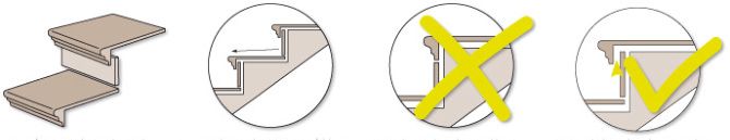 - при приклеивании ступени клей не следует наносить на внутреннюю поверхность носика, оставляя между ним и подступенником технологический воздушный зазор в 3–4 мм.